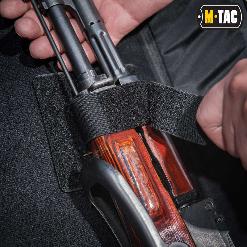 і оснащена трьома знімними стяжками для кріплення зброї на липучці. А також має один демпферний роздільник на той випадок якщо зброя розбирається на кілька складових частин.