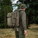 Рюкзак від бренду M-Tac з системою кріплення "Molle" має два великих основних відділу на блискавки. Спереду розташовані два додаткових кишені на блискавці. Ремені, для перенесення рюкзака за спиною, з м'яким наповнювачем і регулюються по довжині. З боку спини є один великий кишеню з активно-дихаючої мембраною. Фахівці бренду M-Tac використовували нову технологію зовнішнього кріплення модульних підсумків, замість звичайних нашивних PALS-строп, вирізавши лазером в шарі нейлону кілька рядів спеціальних отворів, які, в свою чергу, дозволяють кріпити стандартні підсумки з MOLLE-кріпленням і знижують загальна вага виробу приблизно на 35%