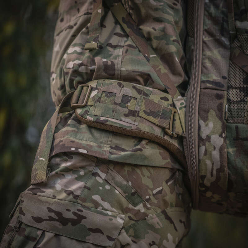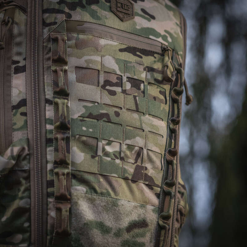 Виготовлений з Cordura 500D і Cordura 1000D – якісного та зносостійкого матеріалу, що забезпечить захист від механічних пошкоджень та тривалий термін експлуатації. Спереду та з боків рюкзак оснащений системою MOLLE LASER CUT, що виконана з Cordura Squadron та дозволить за необхідності збільшити обсяг додатковими підсумками.