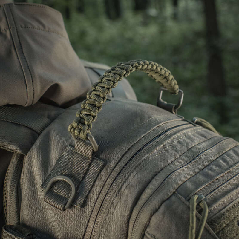 Крім лямок, рюкзак має ручку для підвішування/перенесення за типом валізи. Вона виконана з паракорд і також забезпечена D-кільцями по краях.