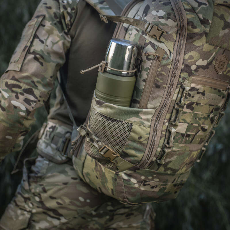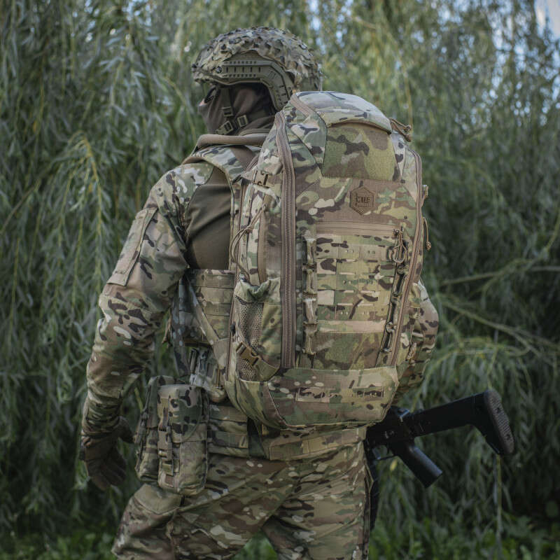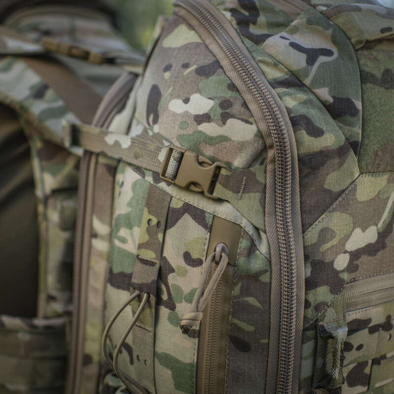 Виготовлений з Cordura 500D та Cordura 1000D – якісного та зносостійкого матеріалу, що забезпечить захист від механічних пошкоджень та тривалий термін експлуатації. Спереду та з боків рюкзак оснащений системою MOLLE LASER CUT, що дозволить за необхідності збільшити обєм за допомогою додаткових підсумків.