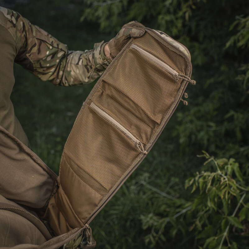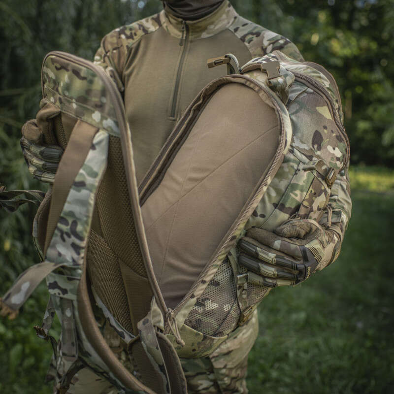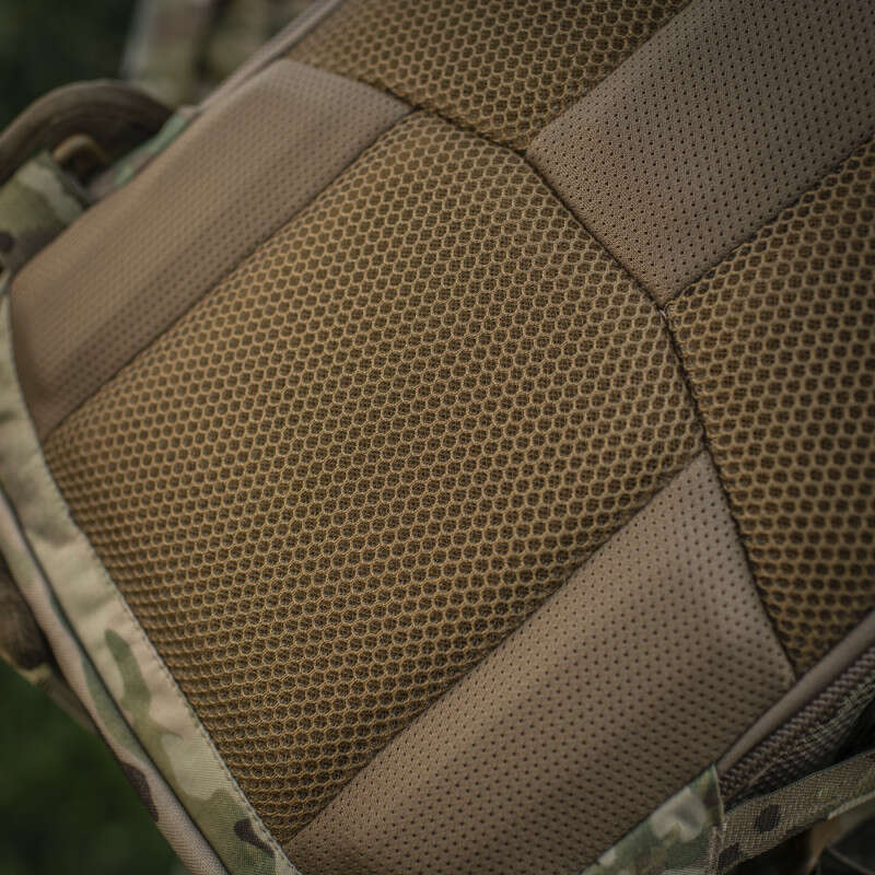 А щоб елементи зброї не спричиняли дискомфорт при перенесенні, конструктори бренду передбачили спеціальну вставку для надання спинці жорсткості. Така конструкція також надає рюкзаку необхідну міцність для перенесення важкого спорядження.