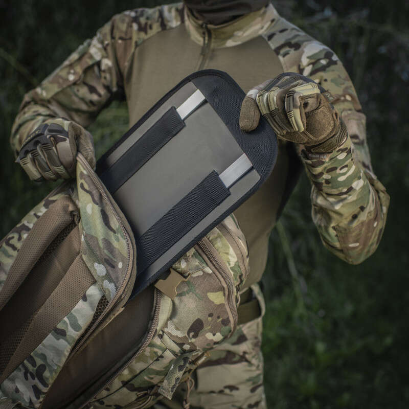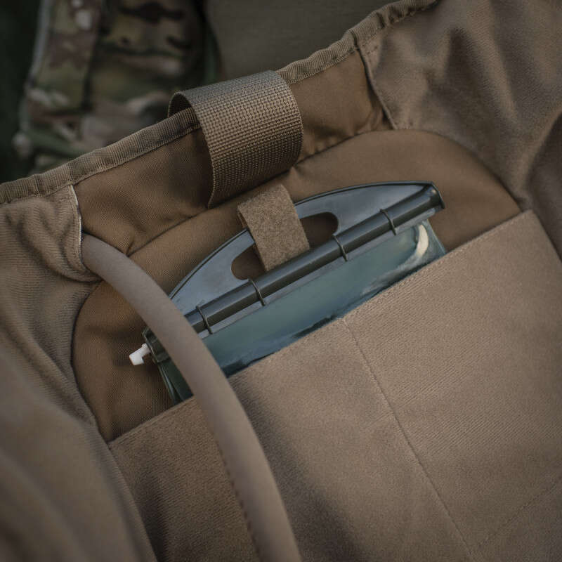 Внутрішня частина та бокові стінки виготовлені з велкро велюру і дозволяють прикріпити модульні вставки, наприклад, модульні вставки від М-ТАС. З боку спини кишеня під гідросистему 38х26х5.5 см (сама гідросистема не йде в комплекті з рюкзаком, але її можна купити окремо: M-Tac резервуар гідросистеми).