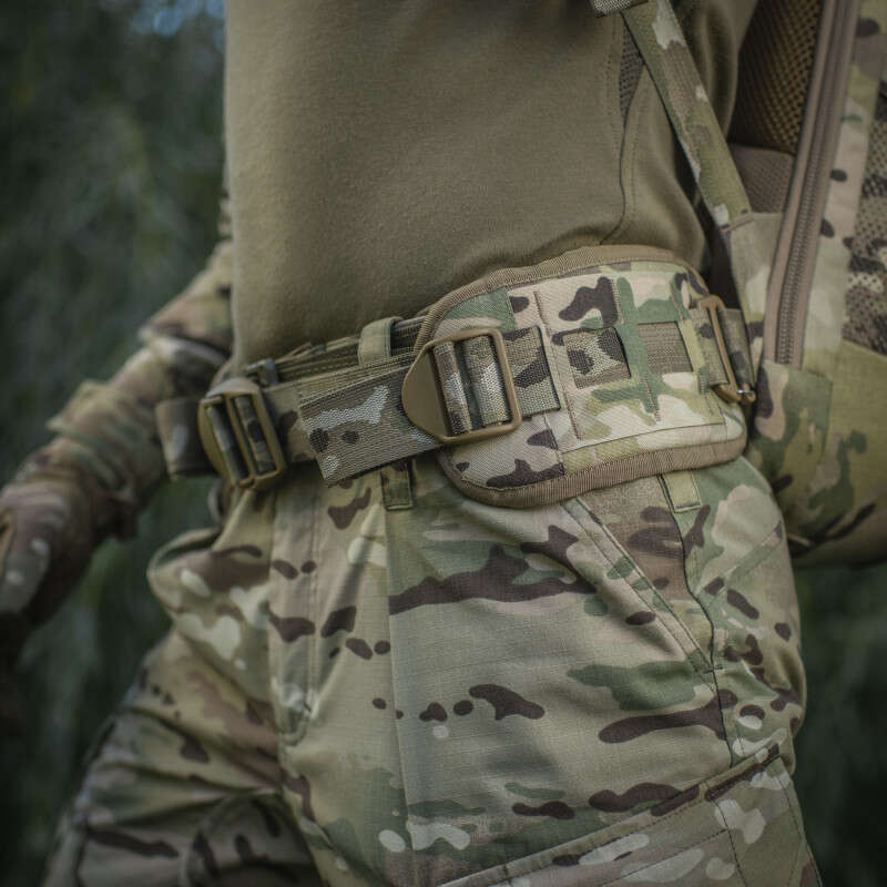 Рюкзак також обладнаний знімним поясом, що істотно підвищує комфорт при носінні рюкзака. Пояс дозволяє стабілізувати рюкзак, розподілити вагу вантажу та знизити навантаження на поперек. Пояс також має демпферну вставку з вивороту і Molle Laser Cut інтерфейс – на зовнішній стороні.