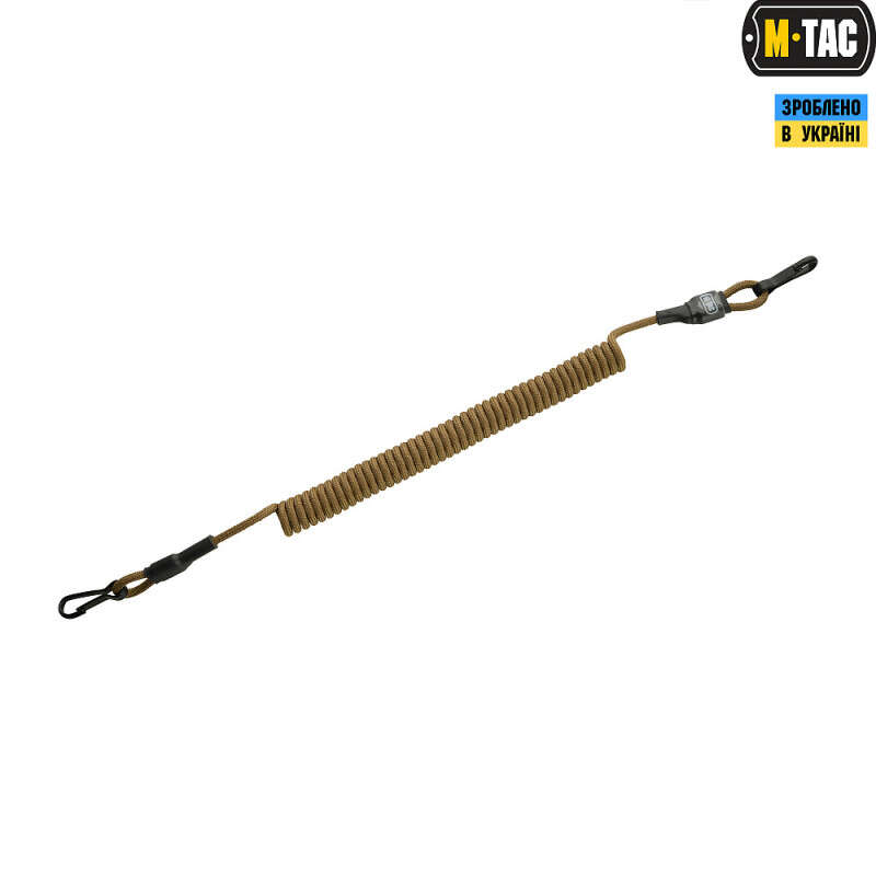 Шнур страхувальний пістолетний спіральний M-Tac призначений для зниження ризику втрачання зброї або заволодіння нею третіми особами. Кріплення предметів до даного шнура здійснюється за допомогою карабіна. Страхувальна пружина або страхувальний шнур, дуже необхідний як в туризмі так і працівникам правоохоронних органів або співробітникам охоронних структур. Даний шнур запобігає втраті особистих речей, чи то ліхтарик, чи ніж або рація а також запобігає вилученню короткоствольної вогнепальної зброї.