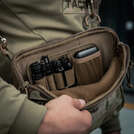 Дана модель має дві кишені та одну регульовану плечову лямку з фастексом швидкого скидання. Внутрішня стінка основного відділення зроблена з велкро полотна, що дозволяє кріпити модульні вставки. Спереду знаходяться дві невеликі врізні кишені на вологозахисній блискавці та MOLLE інтерфейс для кріплення додаткового спорядження. Спинка оснащена мякою демпферною сіткою з отвором під телефон.