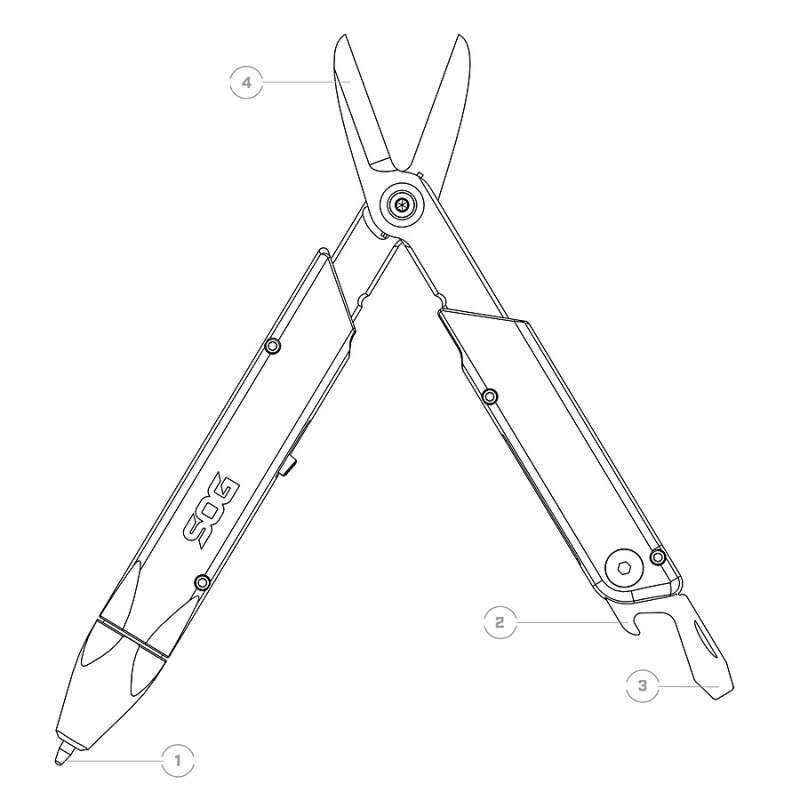 Мультитул SOG Baton Q1 - компактний і зручний інструмент, розміром із звичайний маркер, швидко перетворюється в гострі ножиці з пружинкою для більш ефективного використання. Одна половина руків'я приховує в собі тонку кулькову ручку, яка писатиме в будь-якому положенні, оскільки вона працює під тиском, а інша - оснащена міцною відкривачкою для пляшок з плоскою викруткою середнього розміру на кінці. Зовнішній вигляд SOG Baton Q1 повністю відповідає робочій атмосфері будь-якого конструкторського бюро або адміністративного офісу, а лаконічний дизайн дозволяє взяти його у відрядження і завжди мати знаряддя для втілення в реальність своїх креативних ідей.