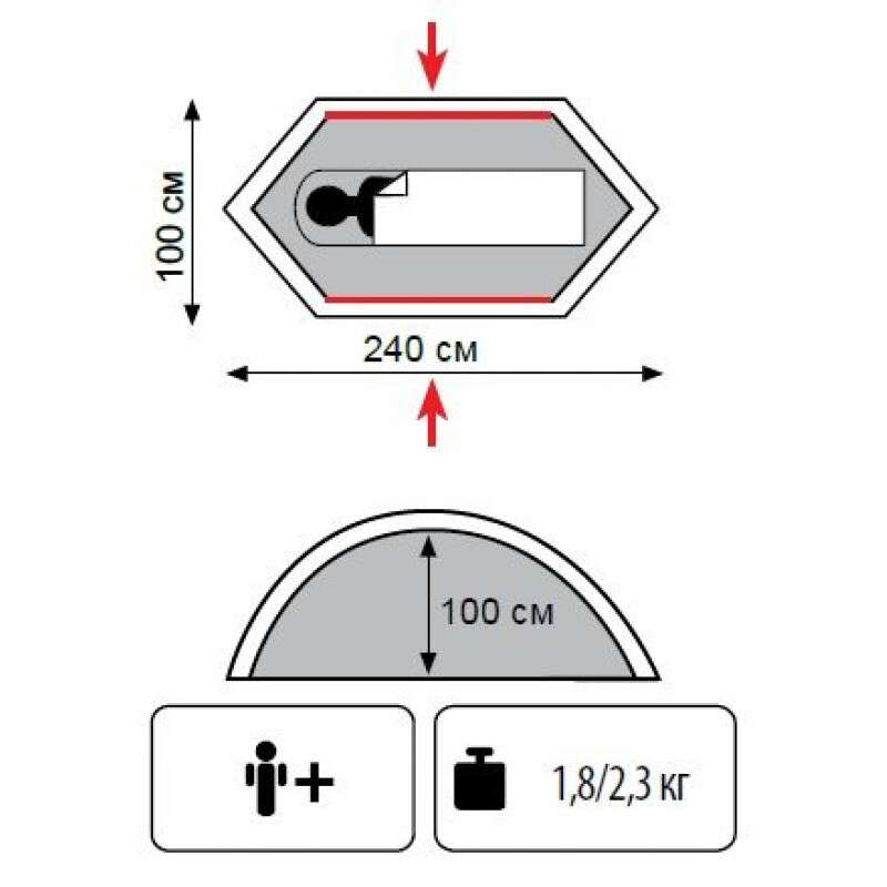 Одномісний двошаровий легкий туристичний намет з двома входами.