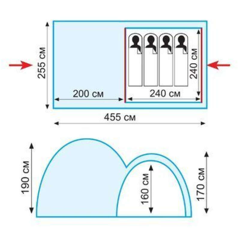 Внутрішній намет: 100% дихаючий поліестер