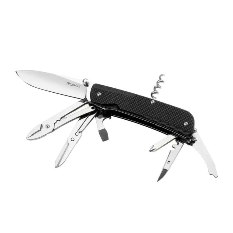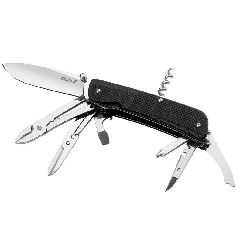 У ножа Ruike LD41 аж 22 різних інструменту в наборі. Серед них кусачки, пасатижі, загин для дротів, відкривачка для пляшок і консервів, кілька прямих викруток різних розмірів і одна хрестова, штопор, шило, розгортка, склобій, отвір, що висувається під темляк і окремий пінцет. Щось з набору абсолютно точно стане в нагоді кожній людині в тій чи іншій ситуації.