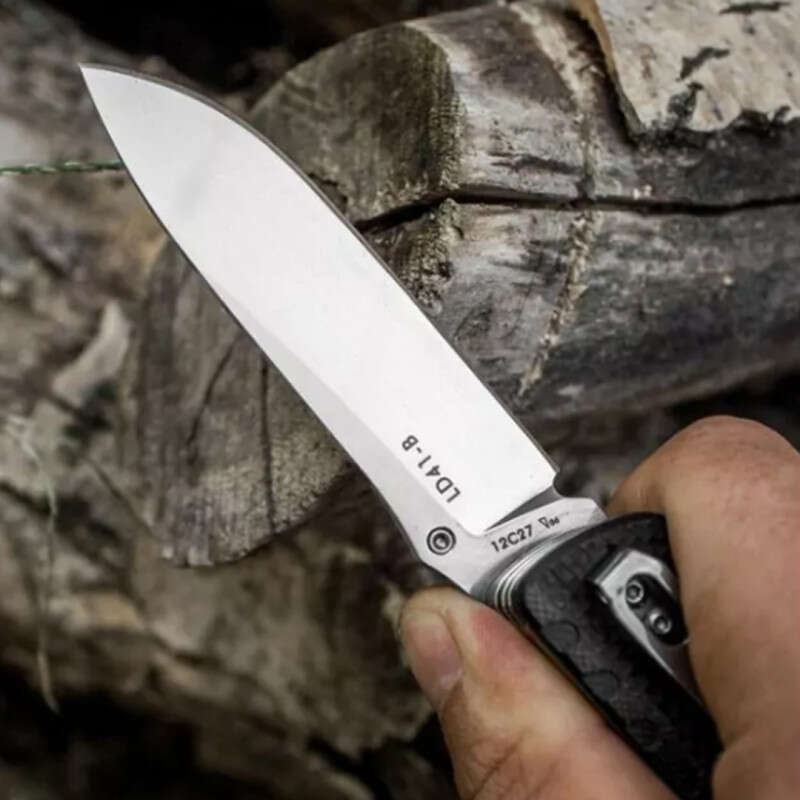 Основний широкий клинок, а також всі інші інструменти виготовлені з високолегованої сталі 12С27. Даний метал має найвищі характеристики міцності, а тому не згинається навіть якщо докласти великих зусиль. Також він практично не схильний до впливу корозії і навіть після тривалого перебування в умовах підвищеної вологості на стали не зявляється іржа. А ось висока твердість зробила обробку даного ножа дуже простий, навіть якщо використовувати звичайну кишенькову точилку.