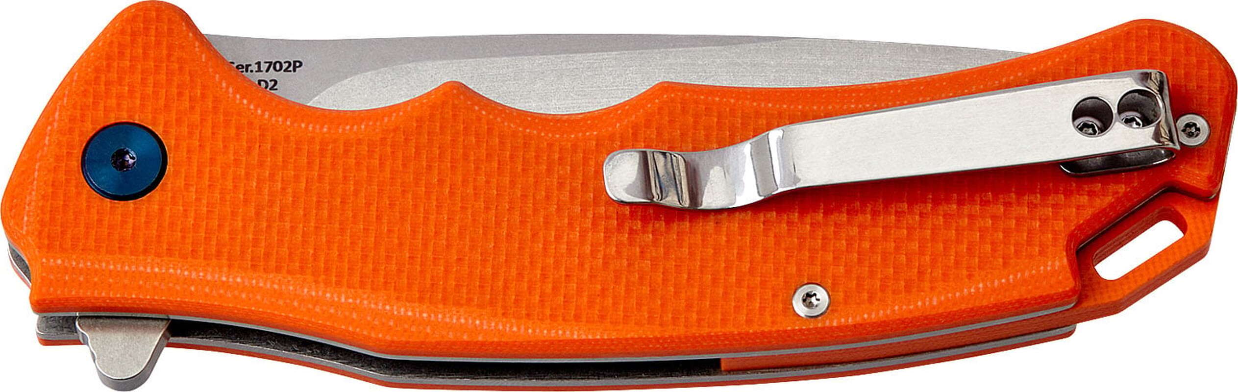 Модель оснащена клинком форми drop point виготовленим з високоміцної сталі D2 з фінішним покриттям Stonewash. Така форма клинка вважається оптимальною, оскільки забезпечує ножу більш широкий спектр використання. Шарикопідшипниковий механізм гарантує легке витягування клинка, а замок типу Liner Lock дозволяє надійно зафіксувати його.