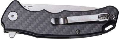 Модель оснащена клинком форми drop point, виготовленим з високоміцної сталі D2. Така форма клинка вважається оптимальною, оскільки забезпечує ножу більш широкий спектр використання.