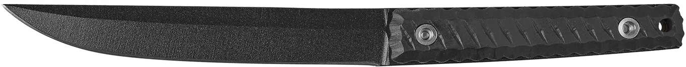 Клинок виготовлений з німецької нержавіючої сталі марки 1.4116, товщиною 5 мм. Дана марка сталі гартується до твердості 57 HRC та легко правиться в польових умовах без спеціального інструменту. Клинок має увігнуті спуски, плейновий тип різальної кромки та чорне, полімерне антиблікове покриття.