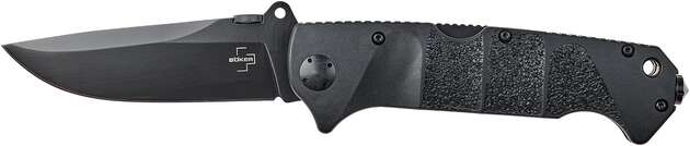 Навіть з першого погляду на Boker Plus RBB видно, що це добротний тактичний ніж. Початок для створення цієї моделі поклав всесвітньо відомий експерт з рукопашного бою Джим Вагнер, який навчав поліцейських Німеччини. Дизайнери ножового концерну Boker разом з ним розробили тактичний кишеньковий ніж для використання поліцією, армією і силами безпеки. Модель RBB 2.0 отримала масивний клинок профілю Clip Point з міцної інструментальної сталі D2. Сталь відмінно тримає різальну кромку гострою, а профіль клинка просто створений для проникаючих ударів. Приводиться в робоче положення за допомогою шайби, біля якої розміщено отвір для темляка. Фіксується в робочому положенні нетиповим для Boker замком Back Lock. Руків'ю варто приділити особливу увагу. Накладки виконані з міцного матеріалу Zytel, який вирізняється гарною опірністю до зовнішніх чинників і хімічних речовин, не вбирає вологу і відмінно витримує ударні навантаження. Завдяки ергономічним підпальцевим виїмкам, ніж комфортно лягає в руку, а для додаткової жорсткості під час упору, зверху нанесені насічки. На торці розміщений ще один отвір під темляк і кишенькова кліпса глибокої посадки.