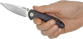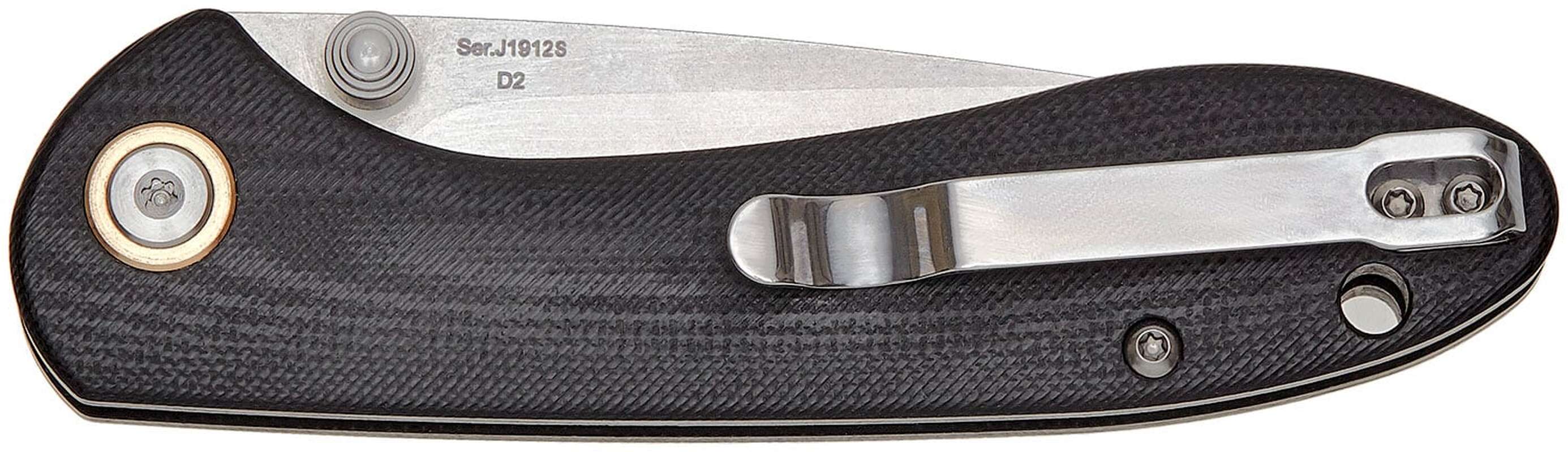 Модель оснащена клинком профілю drop point і виготовлена з високоякісної сталі D2 з декоративною фінальною обробкою Stonewash, яка надає металу неоднорідну матову поверхню. Форма клинка вважається універсальною і має відмінні колючі і різальні властивості. Витягується клинок за допомогою фліпера, а наявність шарикопідшипникової системи забезпечує плавний вихід клинка.