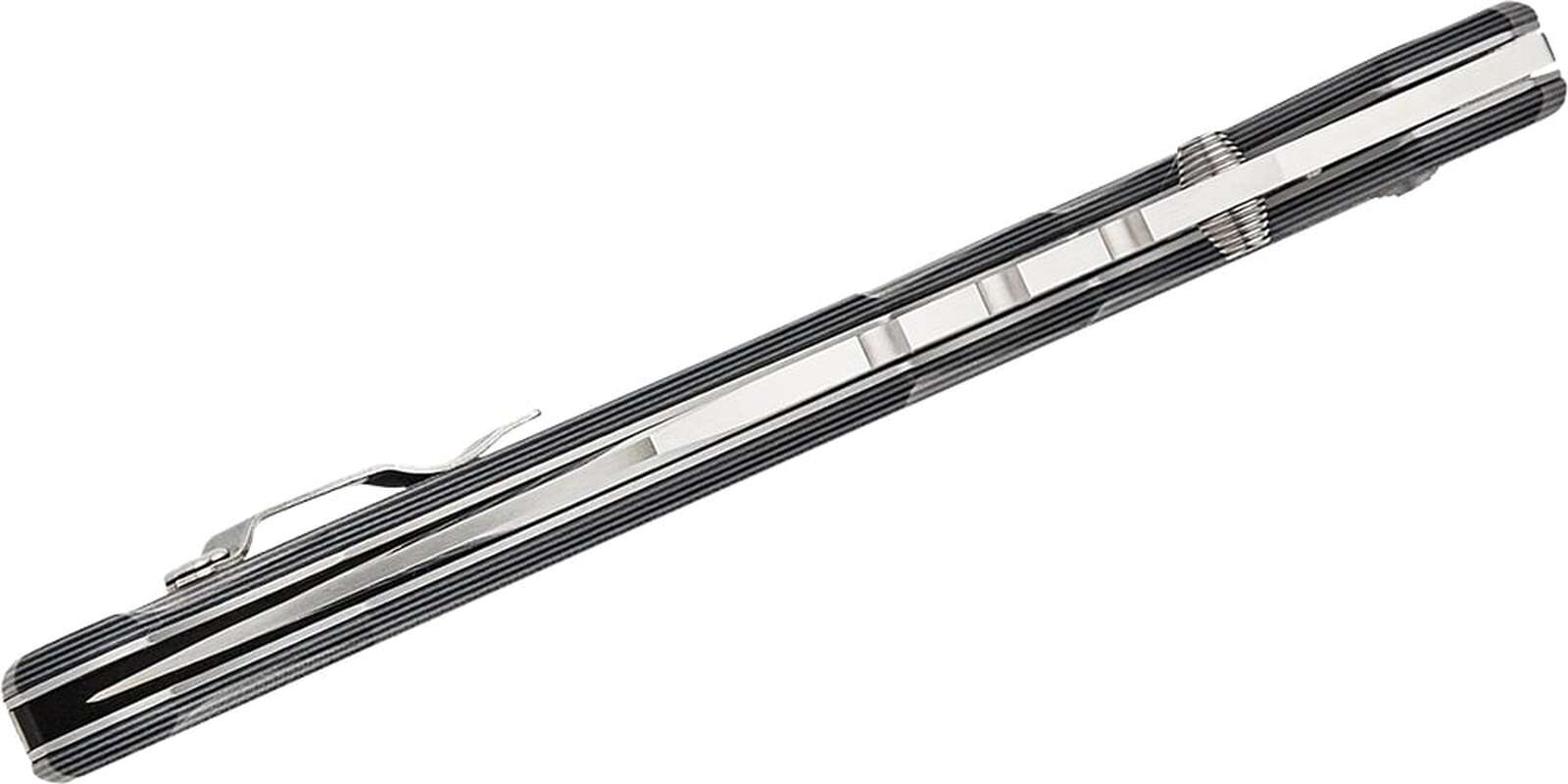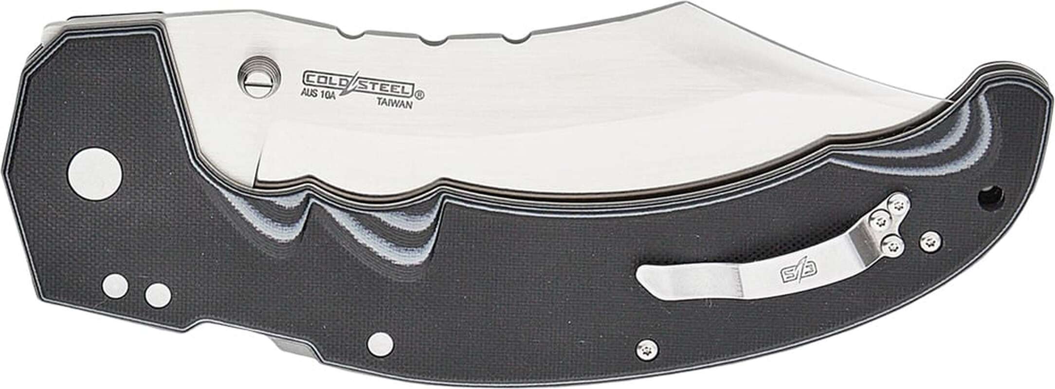 Руків’я, сформоване сталевими лайнерами, має накладки зі склотекстоліту G-10. На наверші знаходиться отвір для темляка. Крім цього, ніж має зручну двосторонню кліпсу.