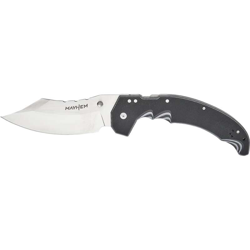 Cold Steel Mayhem – це потужний складаний ніж від американського бренду Cold Steel, який поєднує у собі міцність, ергономічний дизайн та ідеальні різальні властивості.