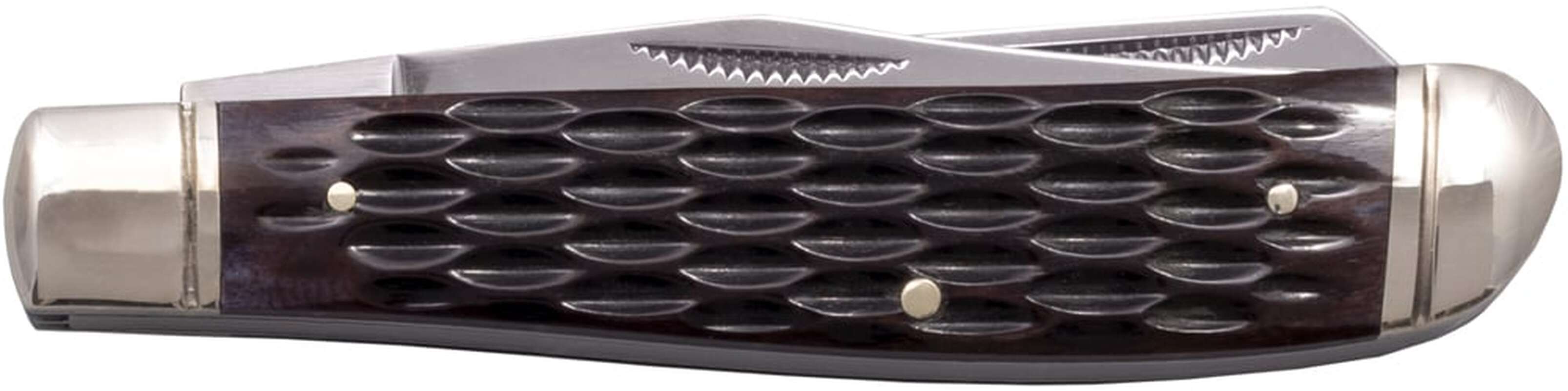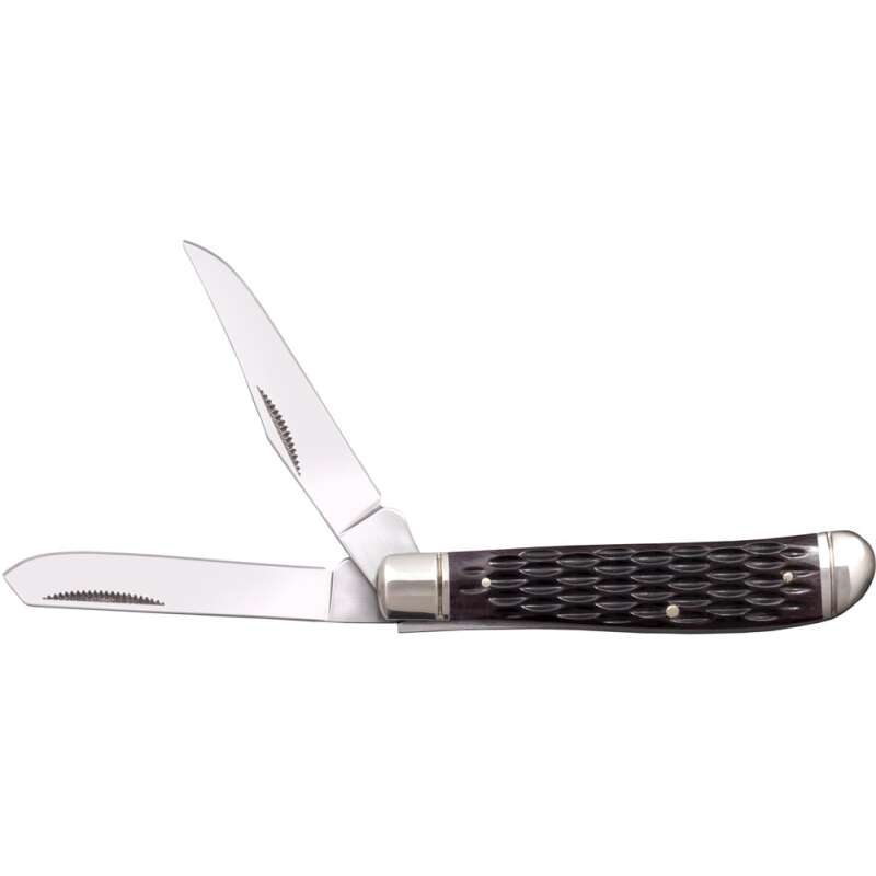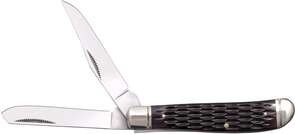 Складаний ніж Cold Steel Mini Trapper - це міні версія Cold Steel Trapper. Він виготовлений за традиційним зразком ножа Jack Knife з двома полірованими клинками, які витягуються за допомогою нігтьової виїмки з одного кінця руків'я. Один клинок профілю Clip Point для грубої роботи і другий клинок Spey Point для більш делікатного різання. Клинки виготовлені із високовуглецевої нержавіючої сталі 8Cr13MoV. Накладки на руків'ї виготовлені з натуральної кістки та прикрашені полірованими металевими больстером та навершям. Фіксується у відкритому положенні механізмом фіксації Slip Joint. Представлені у трьох кольорових варіантах: синій, жовтий та коричневий з фактурними накладками. Cold Steel Mini Trapper – це чудовий кишеньковий ніж, який ідеально підходить для повсякденного використання у міському середовищі.