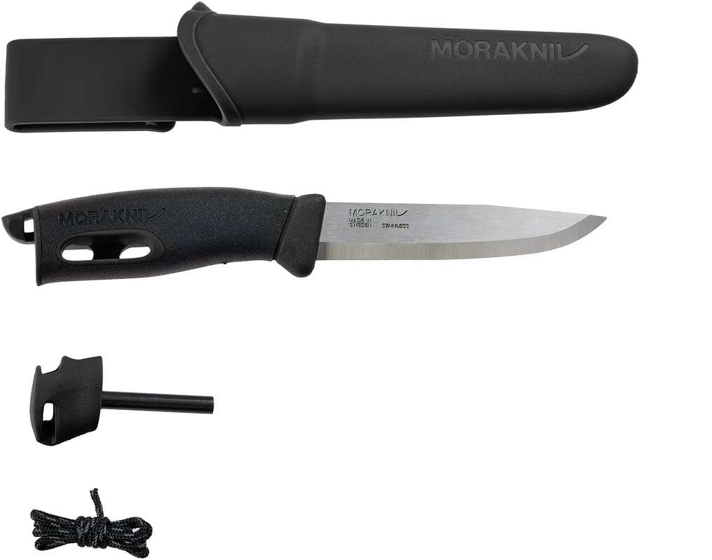 Заснований на вдалій і відомій моделі Companion, ніж Morakniv Spark розроблявся як надійний помічник в будь-яких умовах. Масивний клинок виготовлений з нержавіючої сталі високими показниками утримання заточування. Рукоять з гуми ТРЕ не ковзає в долоні. У торці рукояті заховано знімне кресало. Темляк кріпиться до отвору якраз в кресало, таким чином, при розпалюванні багаття ви не втратите настільки важливий інструмент. Витяг кресала для роботи і повернення його в рукоять не викличе складнощів.