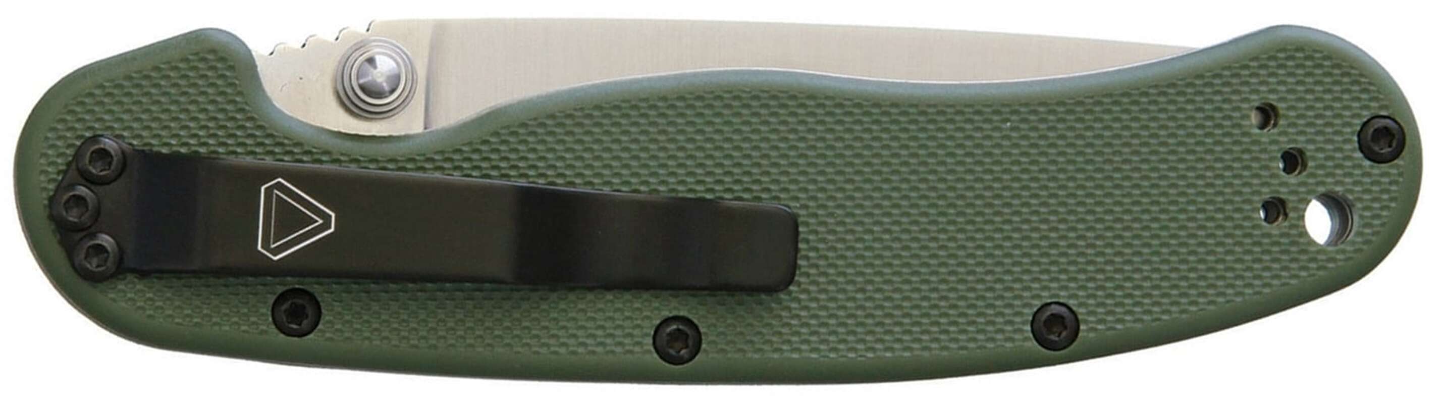 Клинок профілю Drop Point виготовлений з інструментальної сталі D2 або класичної для OKC AUS-8. Клинок приводиться в робоче положення за допомогою двостороннього шпеника, а фіксується надійним замком Liner Lock. Насічки на обуху забезпечують додатковий упор та контроль клинка при роботі.