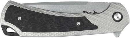 Для впевненого і безпечного контролю при роботі на обуху виконані насічки під упор великого пальця. Відкриття здійснюється за допомогою зручного фліпера, а плавний хід леза забезпечується системою керамічних підшипників. Надійна фіксація в робочому положенні реалізована за допомогою міцного і довговічного замка Frame Lock, який гарантує безпеку і стабільність при будь-яких навантаженнях.