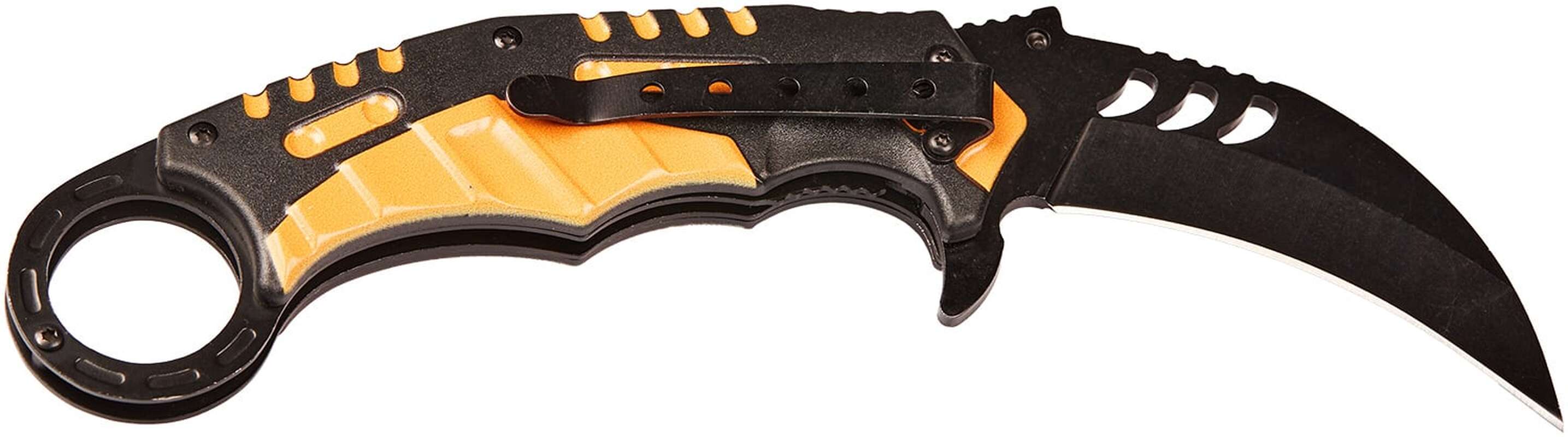 Клинок ножа виконаний з недорогої сталі марки 3Cr13, яка відрізняється хорошими показниками корозійної стійкості, а також простотою правки різальної кромки. Витягується клинок за допомогою фліпера або шпеника і надійно фіксується у робочому положенні сталевою пластиною замка Liner Lock. Ніж обладнаний системою шарикопідшипників, що сприяє легкому та плавному витягуванню клинка.