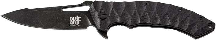 Ніж SKIF Shark II належати новому поколінню однієї з найбільш красивих моделей 400-ї серії. Ніж виділяється на тлі інших моделей своїм яскраво вираженим агресивним дизайном. Оригінальна форма багатофункціонального клинка, упор під великий палець, зручний фліпер, що плавно переходить в підпальцеву виїмку – візитна картка моделі Shark.