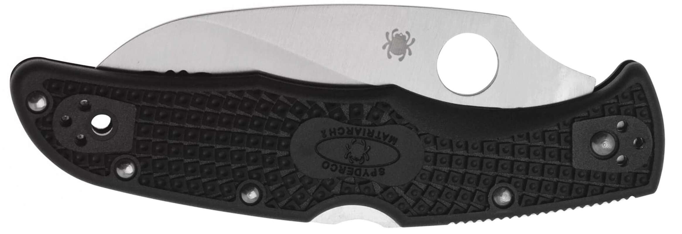 Spyderco Matriarch2 оснащений рукояткою, виготовленою з нейлону, заповненого скловолокном (FRN). Це матеріал дуже легкий, але при цьому надзвичайно міцний. Формується литтям, тому його двухнаправлена текстурована поверхня дуже надійно утримується долонею за будь-яких погодних умовах.