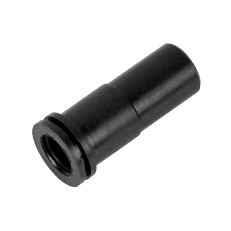 Element нозл (сопло) циліндро-поршневої групи для страйкбольних пістолетів-кулеметів MP5 A4/A5/SD5/SD6 виготовлений з нейлонового полімера і служить для герметизації циліндра з передньої сторони, а також для подачі повітря під тиском в стволик. Вставляється в голову циліндра і має два ущільнюючі компресійні кільця по зовнішньому діаметру трубки голови циліндра.