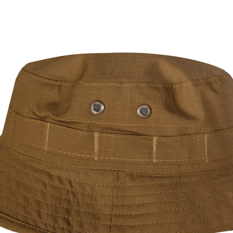 Панама виготовлена з тканини Rip-Stop. Це матеріал, що складається з поліестеру та бавовни, дуже міцний та стійкий до стирання й розривів. Додатково тканина покрита вологостійким тефлоновим просоченням, для захисту від бруду і вологи. Поля панами вироблено з тканини подвійного шару та з додатковим прошиттям, що додає їм більшої жорсткості. Для підвищення комфорту, всі шви приховані, як з зовнішньої, так і з внутрішньої сторони. Також з обох боків панами зроблені металеві люверси з захисною сіткою від комах.
