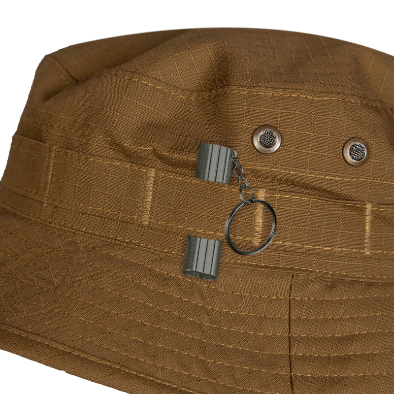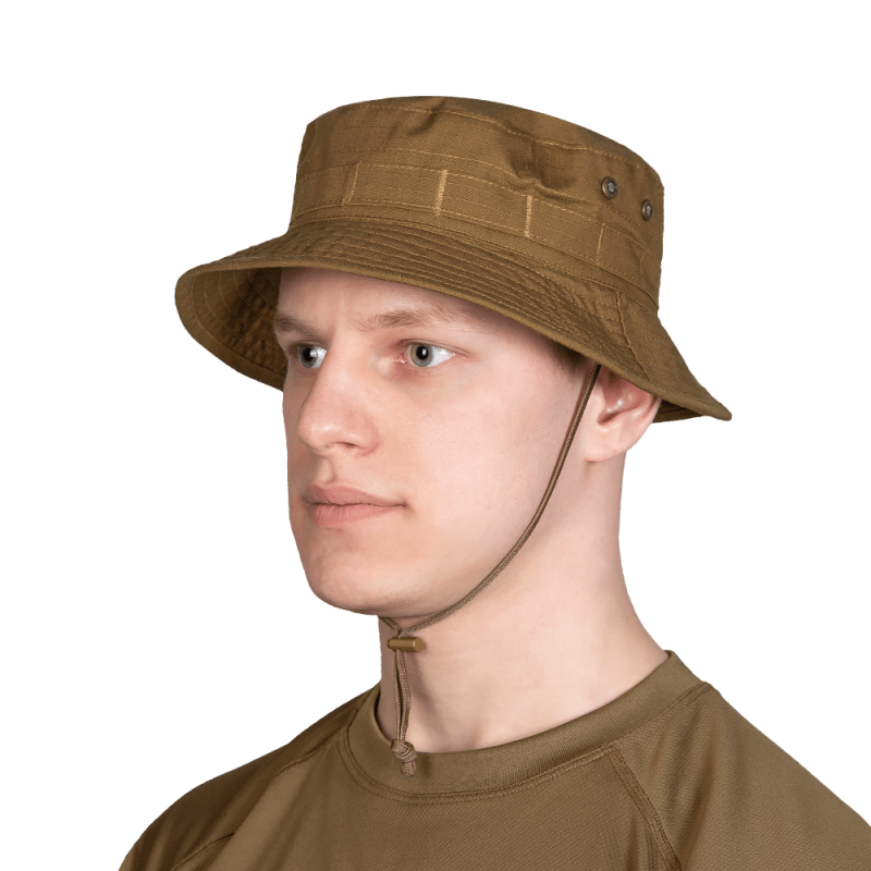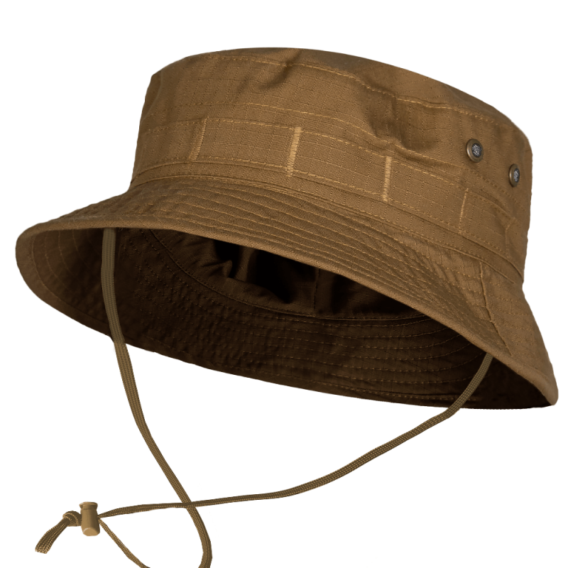 Панама має шнурок для фіксації, який кріпиться з внутрішньої сторони. Сам шнурок регулюється якісним, пластиковим замком-фіксатором. Навколо верхівки капелюха присутня стрічка MOLLE для додаткового обладнання або аксесуарів.