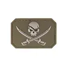 Патч із зображенням черепа з мечами, варіація на тему Веселого Роджера. Зі зворотного боку пришита липучка щоб кріпити шеврон на спорядження, рюкзак або одяг.