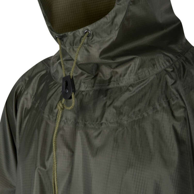 Helikon-Tex® Poncho U.S. Model - водостійке, швидковисихаюче пончо з ріп-стоп поліестеру надійно захистить від дощу та вітру. Вільний, просторий крій дозволяє одягати його на будь-який вид одягу та головних уборів, а також використовувати при носінні рюкзака або іншого екіпірування. Шви пончо проклеєні. Міцні кнопки надійно скріплюють боковини, утворюючи рукав, також дозволяють з'єднати 2 пончо разом. Капюшон оснащений шнуром-стяжкою для зручності регулювання лицьового та шийного отворів. Прямокутна форма 210 х 145 см дозволяє використовувати пончо як невеликий тент, який захистить від вітру та дощу. На кожному кутку - латунний люверс, тому будь-яку сторону легко закріпити до землі кілком від намету або гілкою, що підходить по діаметру. Великою перевагою є невелика вага - 590 грам і розмір -14 х 22 см, у запакованому в компресійний мішок вигляді, що набагато компактніше будь-якої непромокаємої куртки. Незамінний аксесуар у рюкзаку військовослужбовця, мандрівника, мисливця, рибалки чи будь-якої людини, яка веде активний спосіб життя.