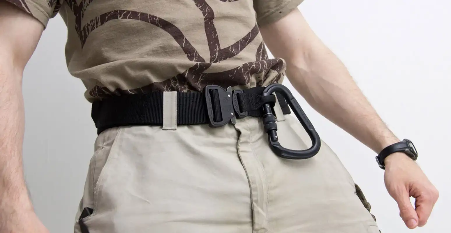 В останні кілька років постійне використання так званого тактичного пояса Rigger's Belt, або по-нашому "страхувального реміня", стає все більш популярним, що, скоріше за все, викликано розвитком технологій виробництва, його функціональністю і міцністю, ну і звичайно модою. Особливо позитивно вплинув випуск канадським брендом AustriAlpin алюмінієвої пряжки Cobra, хоча до цього подібні пряжки вже випускалися компаніями Peltz, Kong, Edelrid і т.д. До появи пряжки Cobra Buckle, у військових страхувальних ременях використовувалася овальна або прямокутна пряжка з пересувним фіксатором посередині, яка зажималась під натягом. Щоб розстебнути такий пояс необхідно було повністю відкріпити вільний кінець від липучки і витягнути його через пряжку і шліци штанів. Звичайно ж, цей метод не назвеш найшвидшим і найзручнішим. Пряжка Cobra вирішила цю проблему, що дозволило використовувати страхувальний пояс, як для підтримки штанів, так і в різних розвантажувальних системах.
