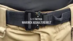 Саме наявність спеціальної посиленої лямки, до якої можна прикріпити карабін, робить тактичний пояс 5.11 Maverick Assaulters Belt страхувальним. Нейлонова лямка прошита в 10 місцях, в інших страхувальних поясах також використовується більш важка повністю металева пряжка, яка додатково фіксується стропою на липучці, що не дає їй «бовтатися» і стукати.