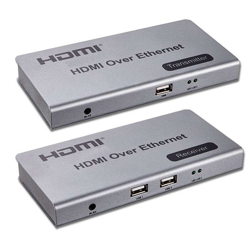 HDMI+USB+IR подовжувач по Ethernet rкабелю забезпечує передачу сигналів HDMI, USB та IR безпосередньо по кабелю вита пара cat5e/6/7 без втрати якості на відстань до 120 м. Пристрої можуть передавати сигнали HDMI з максимальною роздільною здатністю 1080p та сигнали від USB-пристроїв.