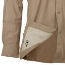 Helikon-Tex® TRIP LITE Shirt - Polyester - це однотонна сорочка з довгими рукавами. Чудовий вибір кожного разу, коли Ви виходите з дому, незалежно від того, чи це прогулянка містом, мандрівка, чи відрядження. Тканина, з якої пошита ця легка сорочка виготовлена з волокон тонкого поліестеру (78 г/м²). Дві кишені на грудях на блискавці вмістять усі необхідні речі: документи, ключі, тощо. На внутрішній стороні правої нижньої частини сорочки пришитий невеликий шматочок тканини для протирання окулярів. Комір з додатковим відворотом можна легко перетворити на високу стійку, щоб захистити шию від сонячних опіків. Внизу з боків розташовані дві невеликі кишені для дрібних предметів. Рукава мають анатомічний крій. Під пахами вставки з сітчастого матеріалу, які підвищують циркуляцію повітря, відводячи назовні надлишкове тепло й вологу та створюючи комфортну температуру тіла. Всі ці елементи роблять сорочку TRIP справді універсальним вибором для будь-яких подорожей.