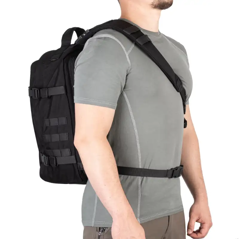 - бічні стяжки по торцях рюкзака для розміщення додаткового спорядження або зменшення габаритів порожнього рюкзака