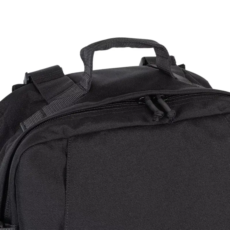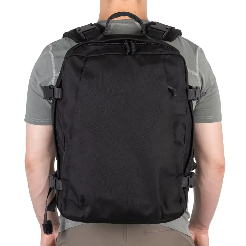 Основне відділення відкривається на 180 градусів, що дає максимальний доступ до речей всередині. Його функціонал доповнений двома сітчастими кишенями на блискавках і системою утримання спорядження з паракорду на стопері. Фронтальна кишеня закривається на блискавку та займає всю передню стінку рюкзака, що робить її доволі місткою.