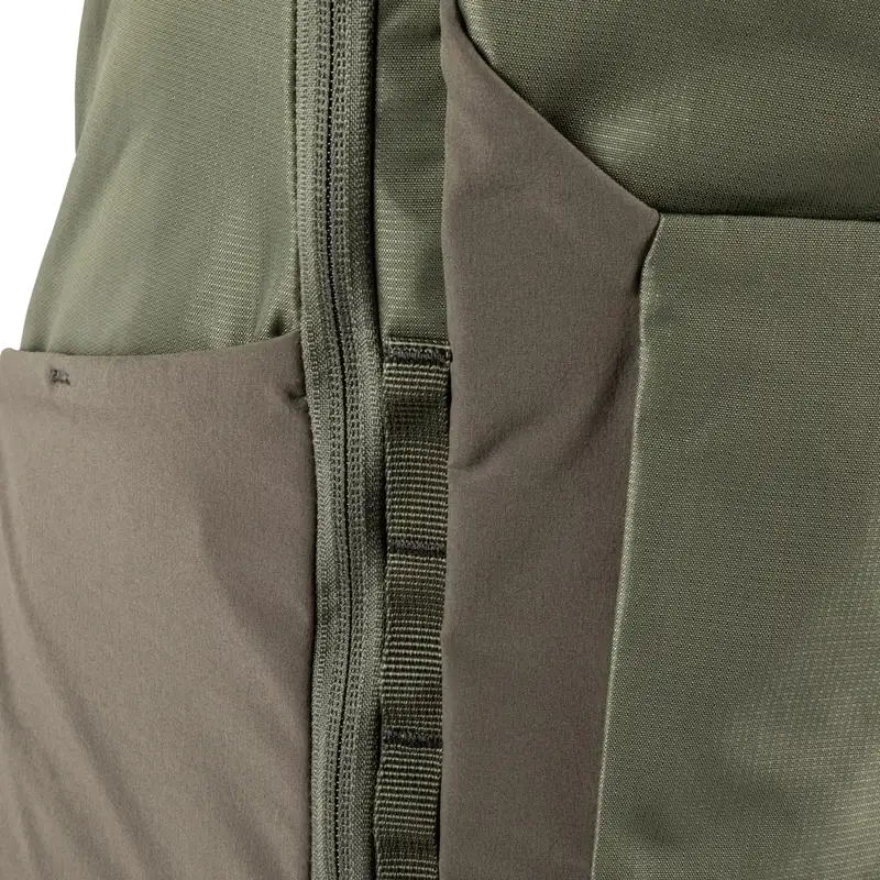 Конструкція передбачає основне відділення та чотири додаткових кишені. На фронтальній частині рюкзака розміщені дві кишені: нижня відкрита з еластичними вставками та верхня на блискавці. Головне відділення має вбудовану організацію для EDC та відкривається майже на 180 градусів, що забезпечує зручний доступ до вмісту.