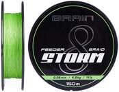 Шнур Brain Storm 8X - сучасна плетінка, що підходить під різні види риболовлі, особливо під фідерну. Він має високу абразивостійкість та тонучі характеристики, тому добре прорізає воду, підвищуючи чутливість снасті, а також менше схильний до зносу при постійних контактах з дном. Шнур має щільне плетіння з 8-ми найтонших волокон з подальшою поверхневою обробкою, завдяки чому є дуже гладким і слизьким, що позитивно позначається на дальності закидання. Для виробництва використано сучасне волокно HM-100, яке добре протистоїть зносу та має мінімальні втрати міцності на вузлах, дозволяючи рибалці використовувати більш тонкі діаметри для риболовлі, ніж зазвичай.