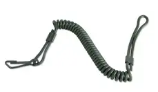 Оригінальний страхувальний шнур від німецького виробника військово-польового спорядження, компанії Міл-тек, призначений для збереження короткоствольної зброї від втрати під час носіння та експлуатації. Захищає власника від спроб заволодіння пістолетом третіми особами і дозволяє швидко підібрати зброю, що впала, «наосліп». Пістолетний шнур пружинного типу виготовлений із еластичного полімерного матеріалу поліуретану. Стійкий до зношування, не стає жорстким при мінусових температурах, виключає деформацію при пересиханні або розмоканні. Завдяки високій гнучкості трос не заважає у русі та при поводженні зі зброєю, при цьому надійно фіксуючи пістолет. Страхувальний кручений шнур складається з трьох частин: спіралі та двох вузлів кріплення. На одному кінці м'яка петля, в яку втягується поясний ремінь (чи будь-яка інша частина спорядження). З іншого кінця запобіжного троса зафіксовано металевий карабін, що пристібається до скоби пістолета.