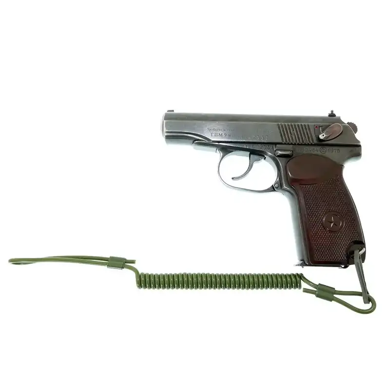 Страхувальний шнур для пістолета ("тренчик" для пістолета). Довжина в розтягнутому стані - 87 см, а в стані спокою - 32 см. Спіральний пістолетний страховий ремінець, так званий "тренчик", служить для кріплення та надійної фіксації пістолета або іншого дрібного спорядження.