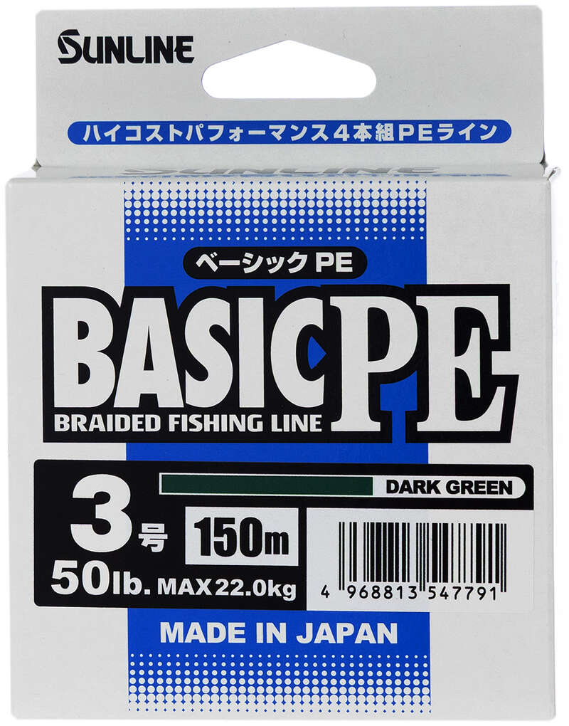 Шнур Sunline Basic PE – високотехнологічна 4-и жильна плетена волосінь японського виробництва з відносно невеликою вартістю. Підійде, як для прісноводної, так і для морської риболовлі. У якості матеріалу використані новітні поліетиленові волокна із покращеною молекулярною структурою, які сплітаються в міцні нитки, що з'єднуються в остаточну косу. Завдяки сучасним автоматизованим технологіям екструдування, плетіння та спеціальному просоченню шнури серії Sunline Basic PE мають мінімальну пам'ять та розтяжність, що позитивно позначається на їхній функціональності – забезпечується вільний виліт, оптимальна передача сигналу від приманки до рибалки та збереження енергії підсікання. Суворий контроль якості на всіх етапах виробництва гарантує точну відповідність характеристик виробів заявленим параметрам. Серія Sunline Basic PE пропонує різноманітні діаметри та розривні навантаження шнурів у кількох популярних забарвленнях та двох видах розмотування, що дозволить підібрати відповідну модель для комплектації оснастки будь-якого класу потужності.