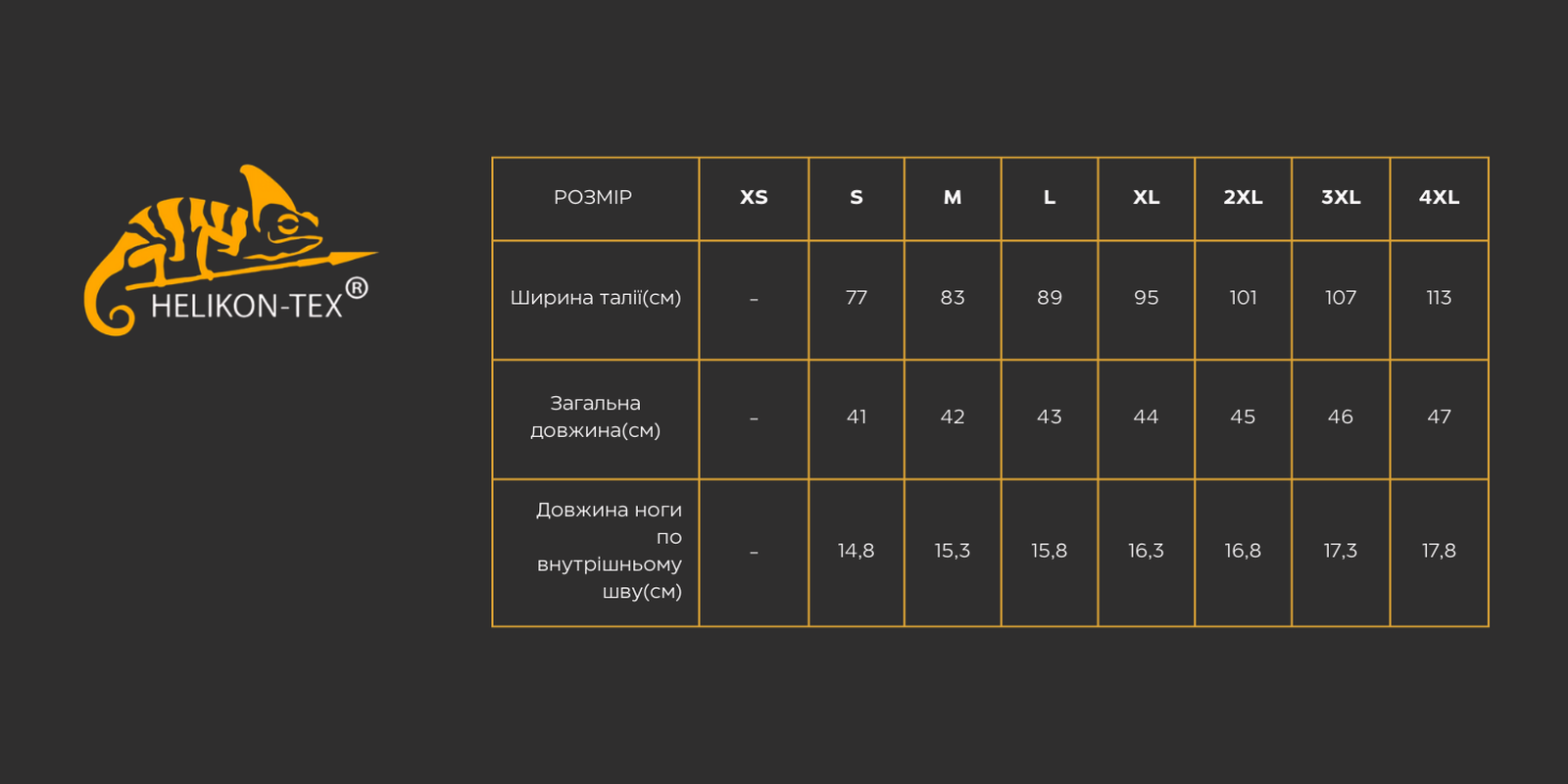 | РОЗМІР (CM) | XS | S | M | L | XL | 2XL | 3XL | 4XL |