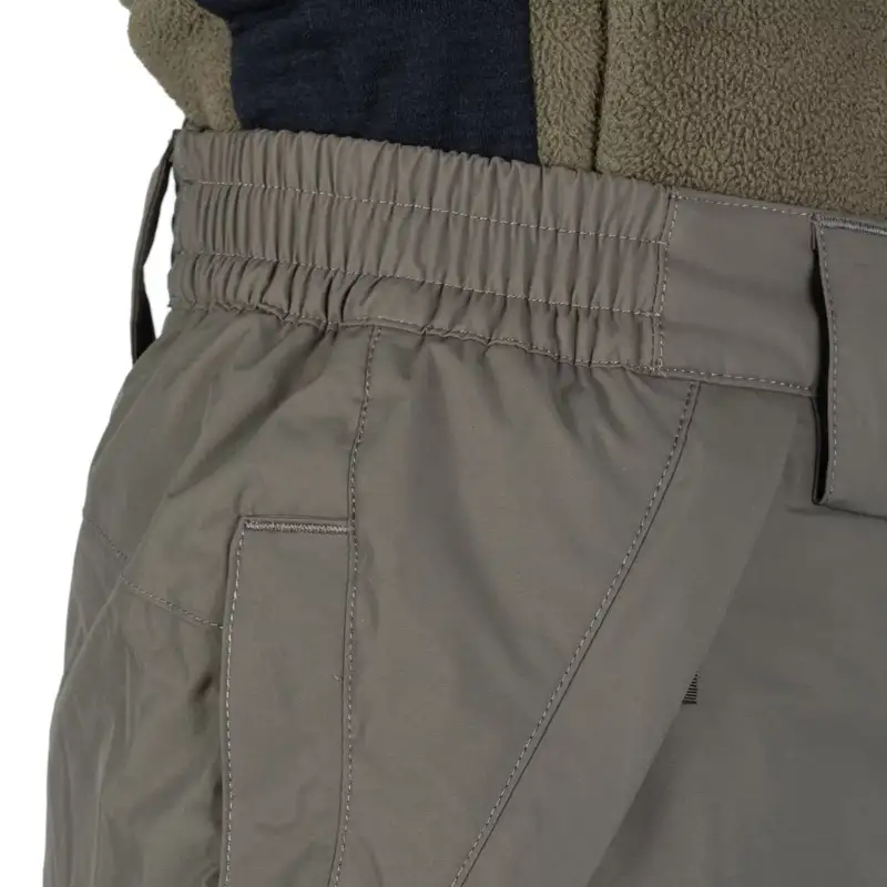 Конструкція тактичних штанів передбачає дві передні кишені в поясній зоні. На окрему увагу заслуговують спеціальні блискавки в зоні бокових швів, які можуть слугувати для терморегуляції або спрощенню одягання штанів поверх інших шарів одягу. В нижній частині штанин розміщені снігові спідниці та манжети на липучках з кнопками для захисту від снігу та опадів. Дані манжети спрощують одягання штанів не знімаючи черевики. Поясна зона має покращену конструкцію для максимальної зручності під час активних рухів. Також з боків вшиті еластичні вставки, а задня частина поясу має збільшену висоту.
