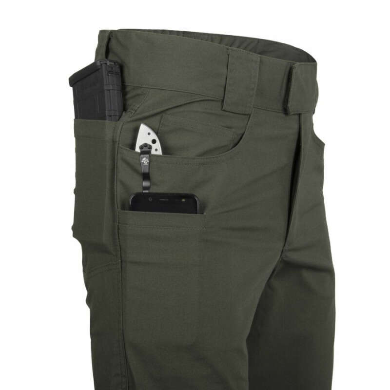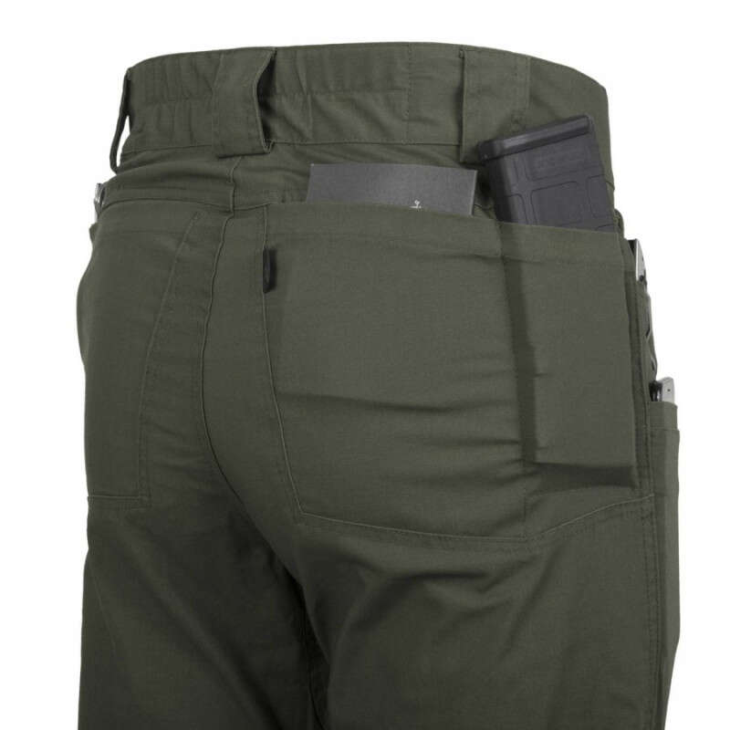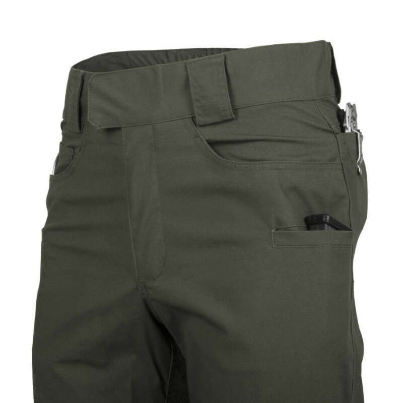 Helikon-Tex GREYMAN TACTICAL PANTS® - DuraCanvas - це модель штанів, в яких дизайнери поєднали тактичні особливості з цивільним зовнішнім виглядом. Виготовлені з еластичної змішаної тканини щільністю 230 г/м². Широкий пояс з еластичними вставками і посиленими шльовками дозволяють одягати ремінь до 50 мм, включаючи всі тактичні ремені Helikon-Tex®: EDC, UTL® або Cobra®. Кромки передніх і задніх кишень посилені, щоб витримувати постійне навантаження кліпс ліхтариків, ножів та інших аксесуарів.