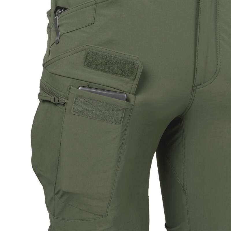 Штани Helikon OTP (Outdoor Tactical Pants) VersaStretch у кольорі Olive – це універсальні тактичні штани від польського бренду Helikon-Tex, призначені для активного відпочинку, тактичних операцій і повсякденного носіння. Виготовлені з легкої та еластичної тканини VersaStretch® (93% нейлон, 7% еластан) із тефлоновим покриттям DuPont™ Teflon®, вони забезпечують відмінну повітропроникність, швидке висихання, захист від легкого дощу та бруду. Технологія 4-Way Elastic гарантує високу еластичність у всіх напрямках, а анатомічний крій забезпечує свободу рухів. Штани оснащені 10 функціональними кишенями: 2 передні сітчасті з посиленими краями для кріплення ножа чи ліхтаря, 2 вузькі передні на липучках для телефону чи магазинів AR/AK, 2 стегнові на блискавках YKK®, 2 широкі задні сітчасті та 2 вузькі внутрішні для дрібних предметів. Еластичний пояс із застібкою Velcro та широкі петлі (до 50 мм) дозволяють використовувати тактичні ремені. Коліна посилені, є кишені для наколінників, а низ штанин оснащений каналами для шнура. Колір Olive ідеально підходить для лісових і польових умов. Легкі (331 г) і міцні, ці штани підходять для військових, туристів, мисливців і любителів outdoor.