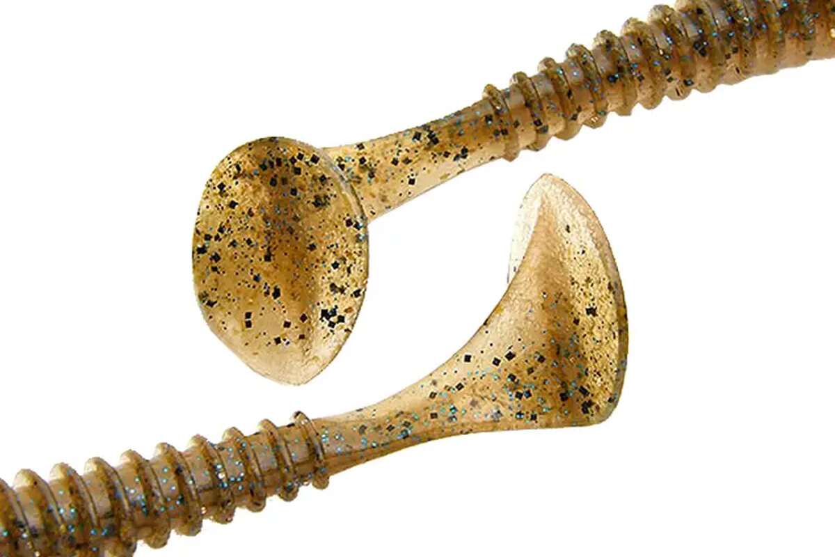 П'ята виброхвоста дуже рухлива і включається в гру при самій повільній проводці. Ребристість на тілі приманки створює додаткові збурення у водному середовищі, що привертають хижака з великої відстані.